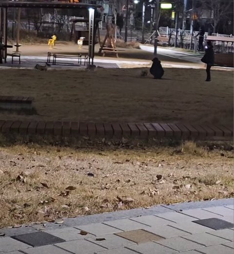 애견놀이터 아니고 운동기구들 갖춰진 공원이고 자세히보면 옆에 운동하는 사람도 있음..