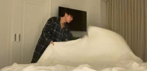 호텔방에서 자기 전에 뷔처럼 한다 vs 안 한다