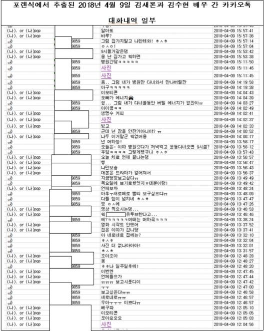 이에 유족은 “위 카카오톡 캡처사진이 김새론과 김수현 배우 간 카카오톡 대화내역임을 입증하기 위하여 포렌식에서 추출한 카카오톡 대화내역 일부를 공개한다. 이 자료에 따르면 해당 대화내역은 2018년 4월 9일에 있었던 것이고, 김새론이 2018년 4월 12일에 위 대화내역을 캡처한 것으로 보입니다”라고 했다.