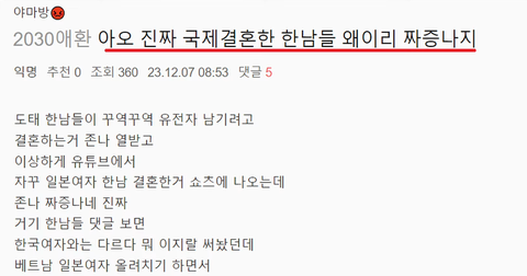 아오 국제결혼한 남자들 왜이리 짜증나지