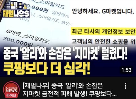 아놔!!! 알리바마랑 손잡은 지마켓도 털렸네요.