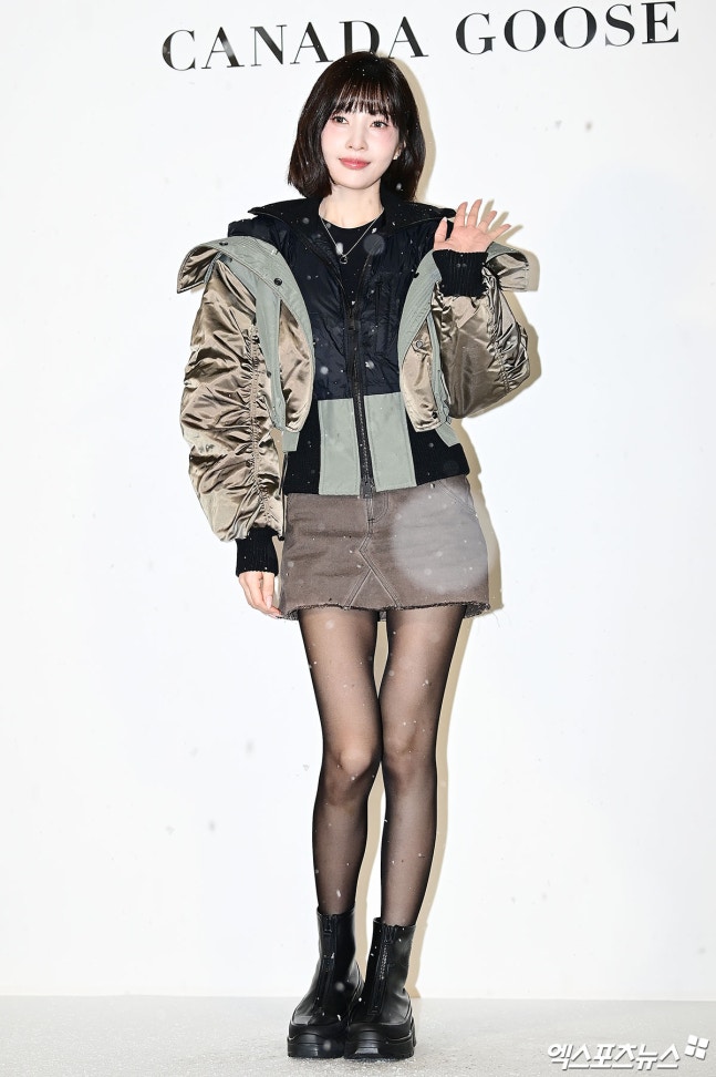 이날 행사에 참석한 조이가 선택한 아우터는 광택감 있는 소재와 풍성한 셔링 디테일이 특징인 카키 톤의 크롭 패딩 재킷. 독특한 디자인과 풍성한 볼륨감과 반대로 초미니 스커트를 매치해 슬림한 다리 라인을 뽐냈다. 검은색 스타킹과 블랙 앵클 워커로 시크함을 더하면서 극세사 각선미를 더욱 가늘고 길어 보이게 만들었다.