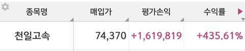 천일고속 지난주부터 신나게 다 팔고 5주 남았습니다 ㅋㅋ 저에게도 이런 행운이 ㅋㅋ 여러분 물려도 존버하세요^^
