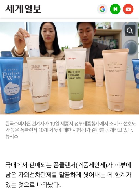 ㅋㅋ선크림 다 지울 수 있다고 떠들더니 인지도 높은 브랜드들도 클렌징폼류들 선크림 제대로 못지우는걸로 개털렸자늠
