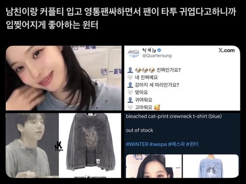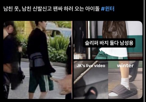 슬리퍼랑 바지가 ㅈㄱ꺼라는 증거가 대체 뭐임 ㅋㅋㅋㅋㅋ 그리고 타투는 윈터가 이미 예전에 한건데 팬이 귀엽다고 해줘서 웃은걸로 ㅈㄹ임? ㅋㅋ