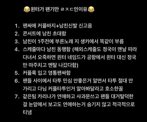 윈터 돌판에서 효녀라고 유명하고 팬들 잘 챙겨서 연애해도 조용히 할줄알았는데 완전 팬기만하면서 온몸으로 티냈네..