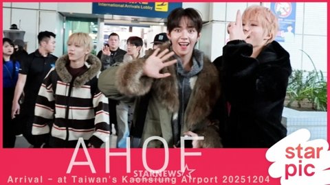 그룹 아홉(AHOF) 스티븐, 서정우, 차웅기, 장슈아이보, 박한, 제이엘, 박주원, 즈언, 다이스케가 대만 가오슝에서 열리는'10주년 아시아 아티스트 어워즈 2025(10th Anniversary Asia Artist Awards 2025, '10주년 AAA 2025') 참석을 위해 대만 가오슝 국제공항을 통해 입국하고 있다. 2025.12.04
