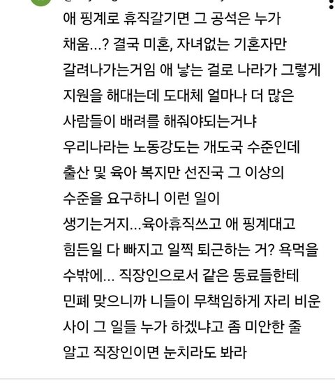 직장 다니는 여자가 임신하면 무슨 죄인이 되어버리노