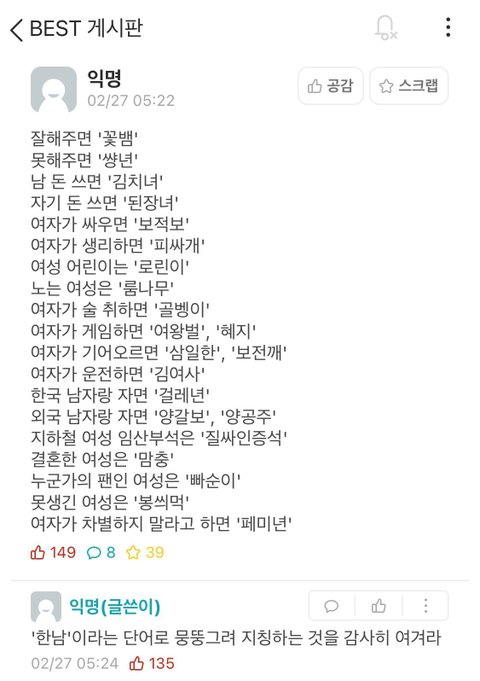 여자는 뭐해도 욕먹으니까 여자들도 남자 악착같이 패며 살아야함