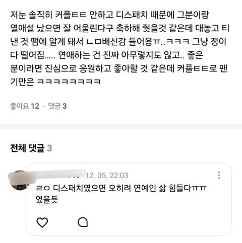 커플타투는 진심 개에바잖음 다들 어느정도 눈치까고 있거나 의심하거나 아님 흐린눈 하고 있었는데.. 그냥 열애설이면 이정도로 빡치지는 않았을 거 같음