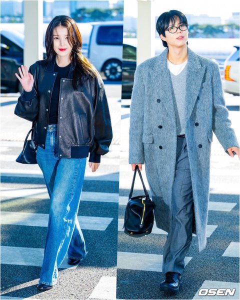 ‘폭싹 속았수다’에서 제주 소녀 오애순(아이유)과 우직한 양관식(박보검)을 연기한 아이유와 박보검이 출국길에 포즈를 취하고 있다. 2025.12.05 /rumi@osen.co.kr