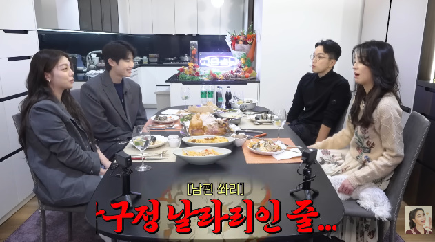 이날 영상에는 에일리, 최시훈 부부가 출연해 한고은 부부와 식사를 하며 이야기를 나눴다. 이날 에일리는 남편과의 첫 만남을 묻자 "저희는 친구가 겹치는 친구가 있다. 그 친구를 원래 제가 오랜만에 만나서 수다 떨기로 했는데 친한 동생도 같이 만나도 되냐. 그때 그 자리에서 처음 만났다. 연락을 그때는 막 안 하고 있었다. 연락처도 모르고. 제가 그때 공연을 10월에 앞두고 있었다. 근데 제 친구도 생일이 그 쯤이고 남편도 생일이 그쯤이어서 '생일겸 둘이 손잡고 보러 오세요' 했는데 그때 공연보고 남편이 (반했다)"고 설명했다.