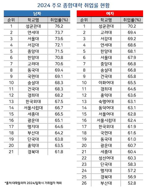 대충 단기알바나 아무곳에 때려넣어서 취업률 부풀리려는 잡대들을 유지취업률 반영해서 싹 다 제거한 자료.