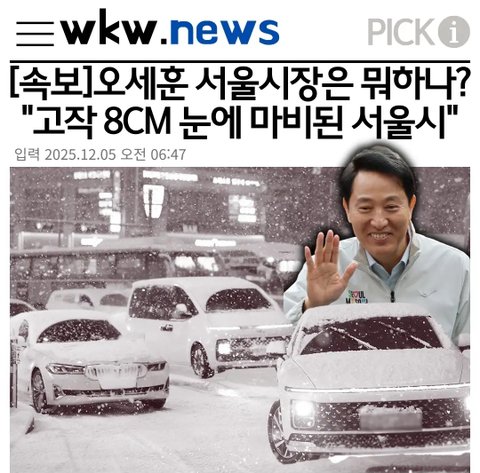 폭설로 도로 마비됐는데 시장이란 것은 동남아를 갔네? 이래도 내란폭도들은 뽑아쥴거지?