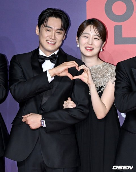 [OSEN=조은정 기자]2023 SBS 연예대상 포토월 행사가 30일 서울 마포구 상암 SBS 프리즘타워에서 열렸다.오상진, 김소영 부부가 레드카펫을 밟으며 포즈를 취하고 있다. 2023.12.30/cej@osen.co.kr