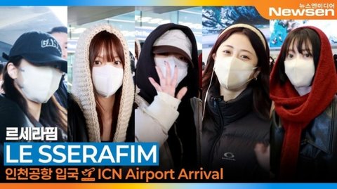 [인천국제공항=뉴스엔 김기태 기자] 가수 르세라핌 멤버 사쿠라, 허윤진, 김채원, 카즈하, 홍은채가 12월 7일 해외 시상식 참석 일정을 마치고 인천시 중구 인천국제공항을 통해 입국하고 있다.