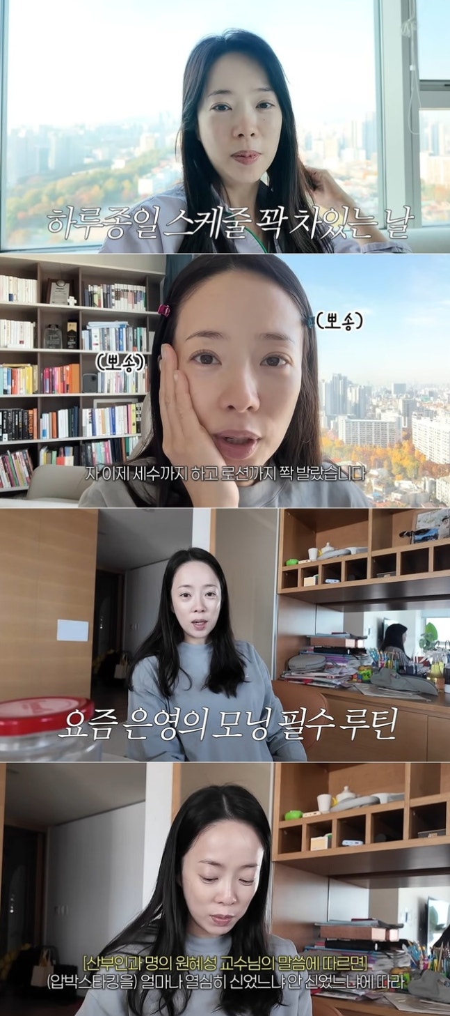 채널 ‘아나모르나 박은영’ 영상 캡처임신 8개월 워킹맘인 그는 "아침마다 압박 스타킹을 신는다. 압박 스타킹을 신느냐 안 신느냐가 붓기도 붓기지만 출산 후 회복 속도도 다르다고 한다"고 귀띔했다.