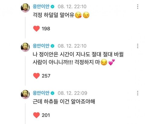 8월 달 댓글이고 게다가 이안은 에스파 회사 직속 후배인데 저격ㅇㅈㄹ을 하네 똥을 싼다 아주