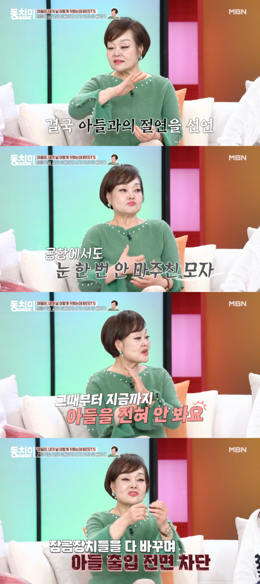6일 방송된 MBN 예능 ‘속풀이쇼 동치미’에서는 이혜정이 출연해 가족 간의 상처와 갈등에 대한 솔직한 이야기를 전했다. 이날 그는 “아들과 절연한 지 꽤 됐다”며 “작년 12월 일로 지금까지 얼굴을 보지 않았다”고 고백했다.