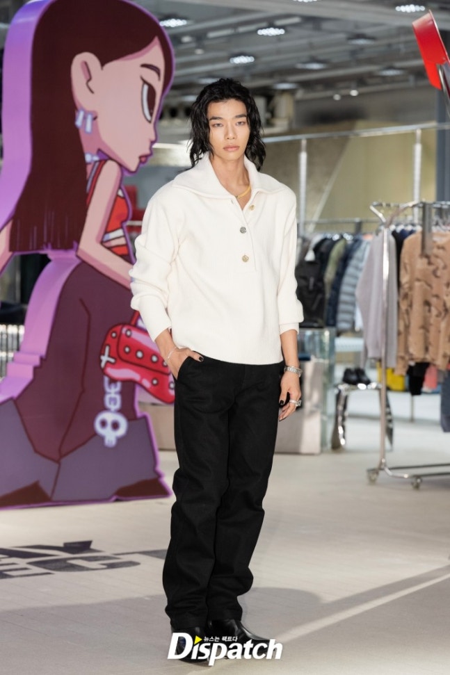 타잔은 화이트 니트와 블랙 팬츠로 멋을 냈다. 매력적이 페이스가 눈길을 사로잡았다.