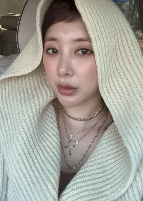 사진 속 서인영은 아이보리색의 두꺼운 니트 가디건 모자를 뒤집어쓴 채 카메라를 응시하고 있다. 특히 여러 개의 십자가 모양 목걸이를 레이어드한 독특한 액세서리 스타일링이 눈길을 끈다.
