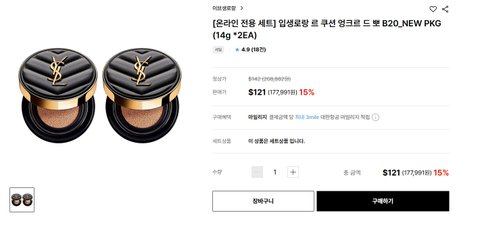 대한항공 스카이샵에서 입생로랑 르 쿠션 엉크르 드 뽀 15% 할인하네