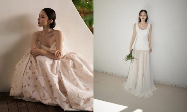 박진주는 7일 개인 계정을 통해 "제가 받았던 잊지 못할 마음과 사랑, 더 큰 사랑으로 성실하게 보답하겠다"며 결혼 소감을 전했다. 그는 "감사 인사는 진심을 꾹꾹 담아내느라 속도가 굉장히 느린 점 양해 부탁드린다"고 덧붙였다. 이와 함께 웨딩 사진도 공개돼 시선을 모았다. 사진 속 그는 오프숄더, 벨라인, 시스루 등 다양한 콘셉트의 드레스를 완벽하게 소화해 내 감탄을 자아낸다.