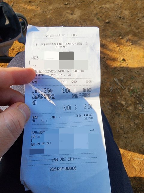 검표를 하던 앳된 직원 한명이 계속 개를 데리고 다니면서(말티즈나 치와와같은 작은 강아지가 아님) 귤 껍질 잘 버려라, 바구니에 너무 많이 담지 마라, 영수증 확인 좀 하자 등등 감시원처럼 돌아다니고있었다. -> 사실 이부분도 조금 이해가 안됨, 이미 검표하고 들어온 사람들 영수증은 왜 확인하는지...