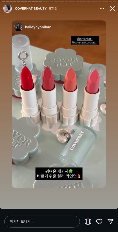 그 옷 브랜드 커버낫 맞음ㅇㅇ.. 립밤이랑 립앤치크 나왔네 귀엽다