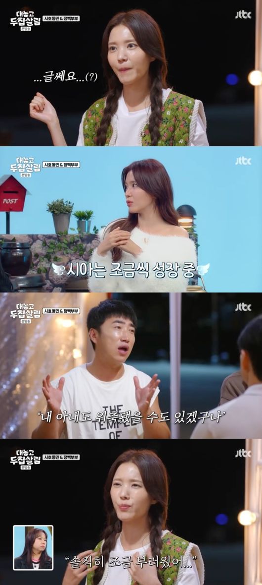 장동민은 “옛날에도 여동생 같다고 해서 항상 놀리고 괴롭히고 그랬는데, 애가 이제 둘이고 엄마로서 봤는데 뭔가 예전보다 조금 많이 위축돼 있다는 생각이 들어서. 그래서 내가 많이 느낀 게 ‘우리 아내도 그러겠구나’다”라며, “우리 아내도 결혼하고 아기 키우고 사생활도 없는 걸 봤을 때 우리 아내도 많이 위축됐구나했다”라고 설명했다.