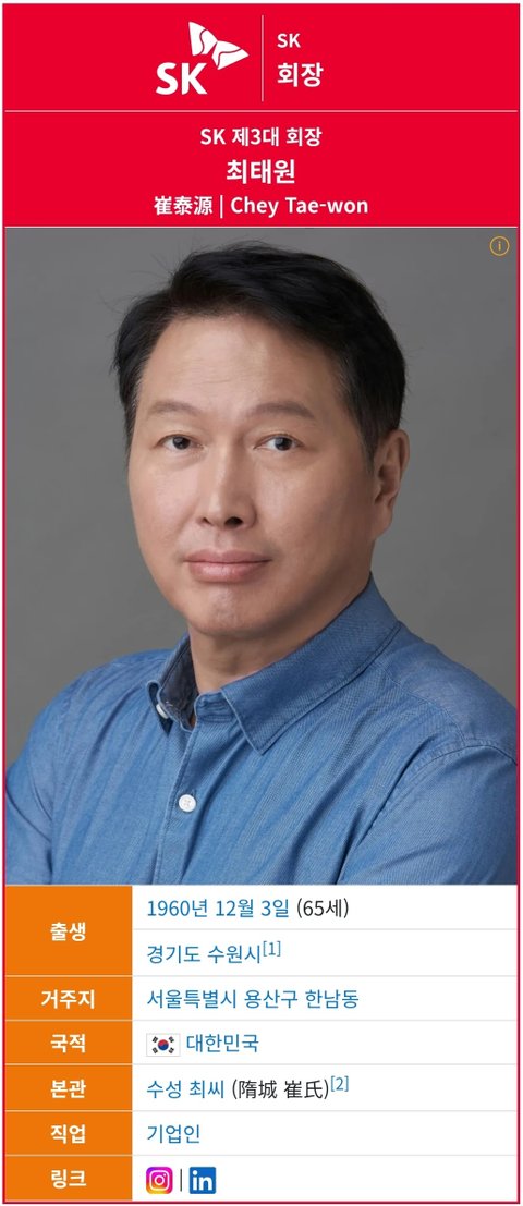 (사진1 설명) 최태원(崔泰源, Chey Tae-won) SK 제3대 회장 <출처: NAVER 나무위키>
