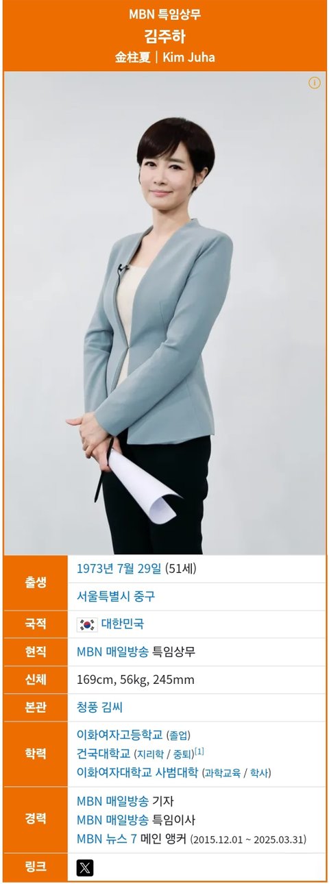 (사진7 설명) 김주하(金柱夏, Kim Juha) MBN 특임상무 <출처: NAVER 나무위키>