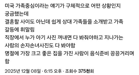 나가서 사는 친구들중에 백남 사귀던애들 있었는데 죄다 사귄지 얼마안됐는데도 남자쪽이 부모님이랑 가족 소개시켜주고 그랬음 갑분 식사 같이하고하길래 무슨 결혼상대인줄 아 그리고 가족행사나 여행에 애인 초대하는 경우도 개많더라