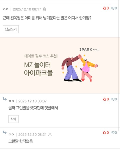 저 밑에 댓글에 쓰여져 있길래 근데 왜 댓글마다 왼쪽팔 아미위해 남겨둔다더니 실망이다 약속이나 한것마냥 도배되어 있던데?