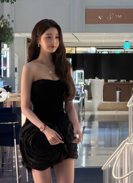 사진=장원영 SNS장원영은 짧은 기장의 블랙 튜브톱 드레스를 착용, 우아하고 고급스런 매력을 발산했다.