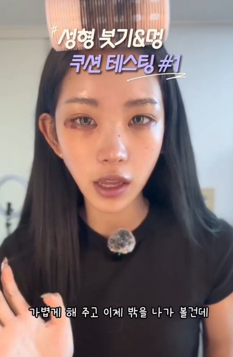 수술한지 7일차가 됐다는 최준희는 "눈 밑에 노랗고 붉게 멍이 들었다. 어제 실밥을 풀었다. 붓기가 덜 빠진 상태지만 오늘 연말 행사 드레스 피팅을 해야 한다. 무조건 화장을 하고 나가야 한다"며 메이크업을 시작했다.