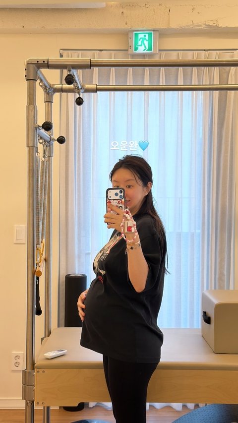 공개된 사진 속에는 은가은이 자신의 배에 손을 올린 채 셀카를 찍는 모습이 담겼다. 티셔츠와 레깅스를 입고 만삭임에도 운동에 집중하고 있는 은가은. 어느새 더욱 볼록해진 D라인이 눈에 띈다.