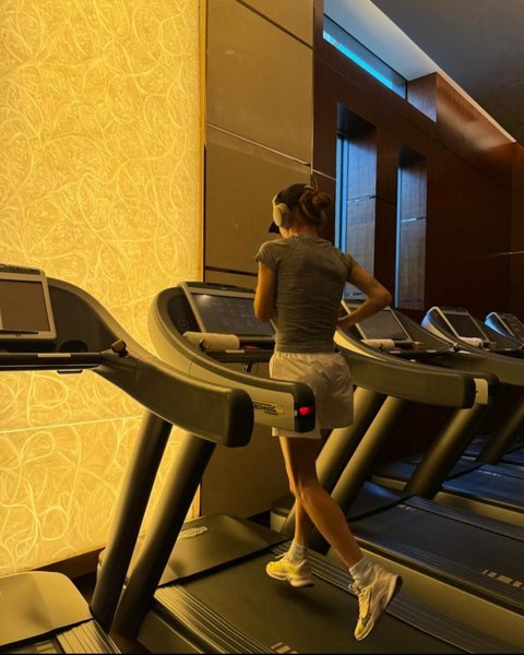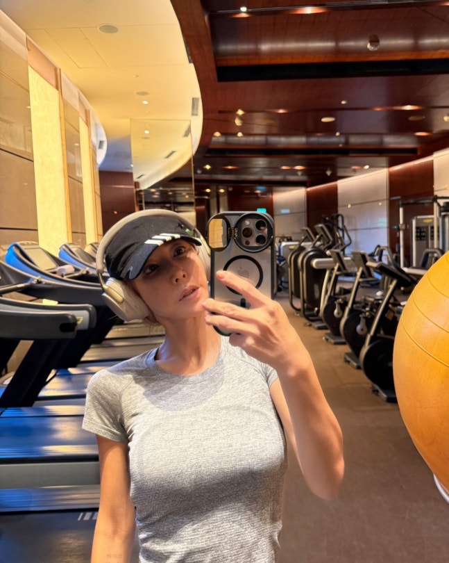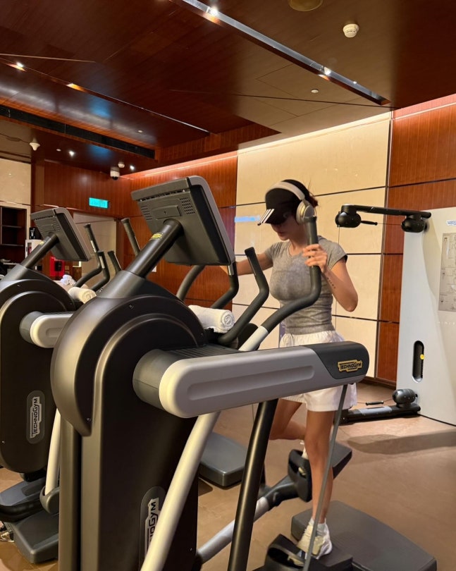 S.E.S 슈헤드폰을 쓰고 땀에 젖은 얼굴로 인증샷을 남기는 슈의 탄력 있는 피지컬이 눈길을 사로잡는다.
