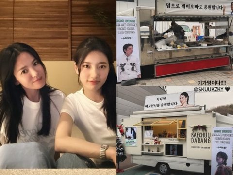수지, 송혜교와 공유에게 보낸 커피차이에 송혜교는 "기가영이다!!!"라고 받아쳤고, 특히 간식차에 적힌 "덤으로 깨비오빠도 응원합니다"라는 유쾌한 문구가 시선을 모은다.