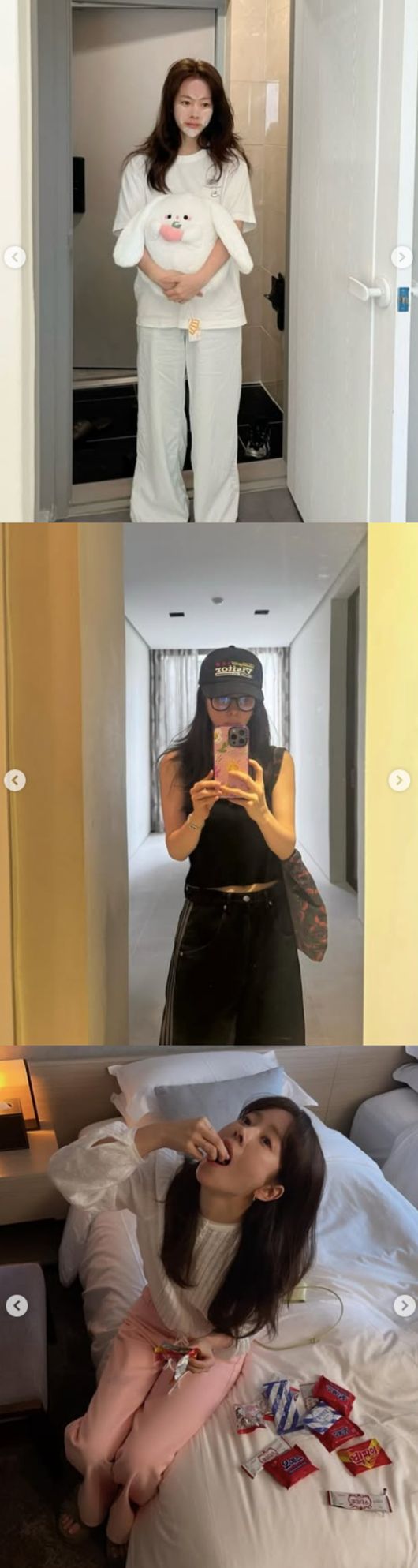 또 한지민은 편안한 차림으로 스킨패드를 얼굴에 덕지덕지 붙이면서도 굴욕 하나 없는 러블리한 매력을 뽐내기도 했다. 뿐만 아니라 군것질을 하면서도 늘씬한 몸매를 선보여 눈길을 끌었다.