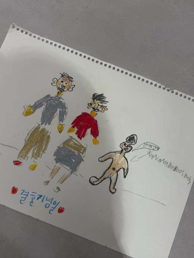 서현진은 "그 와중에 우리 그려준 아들내미. 엄빠 결혼으로 본인이 생겼다며. 귀여워라"고 전했다. 공개된 사진 속에는 서현진의 모습이 담겼다.