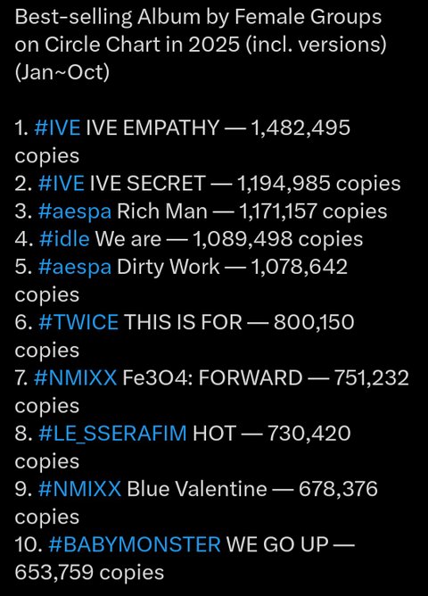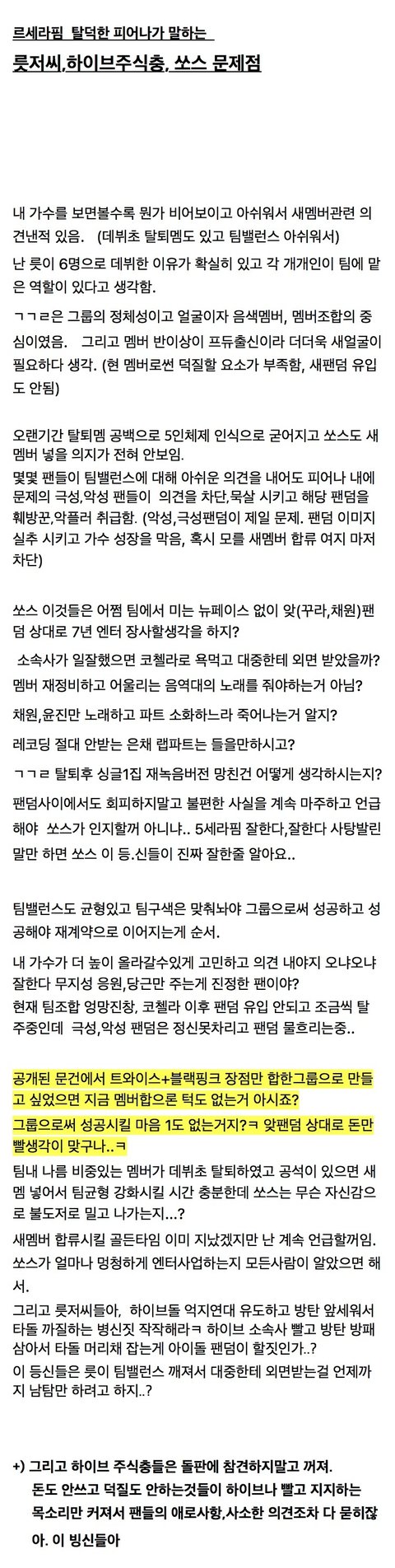 르세라핌 제외한 모든 여돌(아이브,에스파,베몬,아일릿,엔믹스,미야오,이즈나,프나..등등) 화이팅~~!!!!
