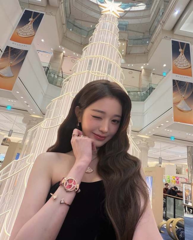 아이브 장원영 소셜미디어장원영은 디바스 드림 대표 귀걸이, 목걸이 등을 착용해 우아한 분위기를 연출했다. 또한 손목에는 장원영의 피부 톤과 대비되는 강렬한 붉은색 시계를 착용해 포인트를 줬다.