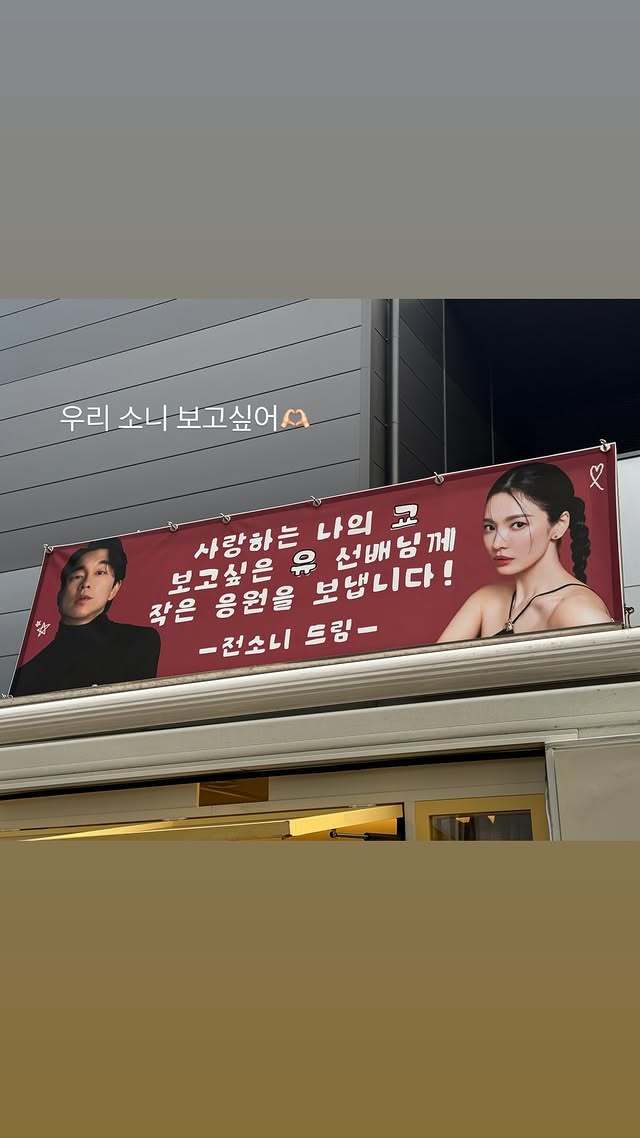 송혜교 소셜미디어전소니는 "사랑하는 나의 교 보고 싶은 유 선배님께 작은 응원을 보냅니다!"라는 응원의 메시지를 전달했다. 그러면서 "천천히 강렬하게 응원합니다!"라고도 했다.