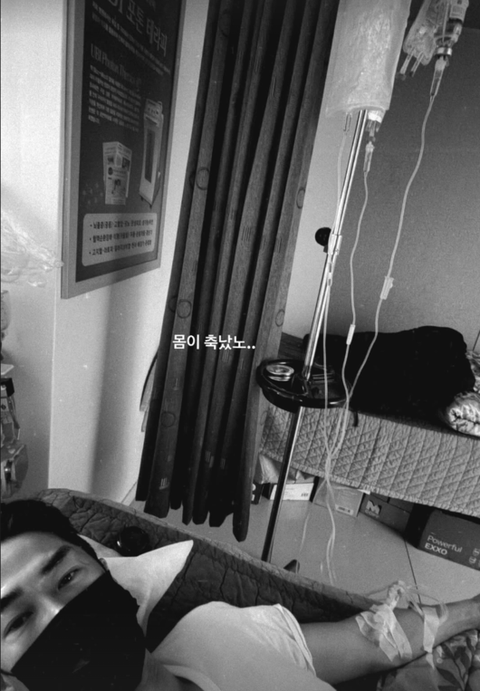 사진 속에서 배정남은 한 병원의 침대에 누워 마스크를 착용한 채 링거를 맞고 있는 모습이다.