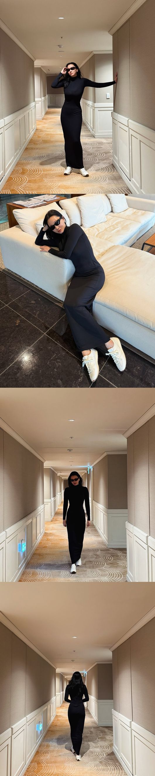 공개된 사진 속 장윤주는 목부터 발끝까지 온몸에 딱 붙는 올블랙 롱 드레스를 완벽하게 소화한 모습. 군살 하나 없이 매끄럽게 떨어지는 실루엣이 장윤주의 환상적인 '트로피 몸매'를 그대로 드러내며 보는 이들의 감탄을 자아냈다.