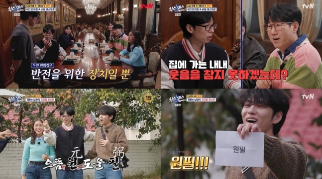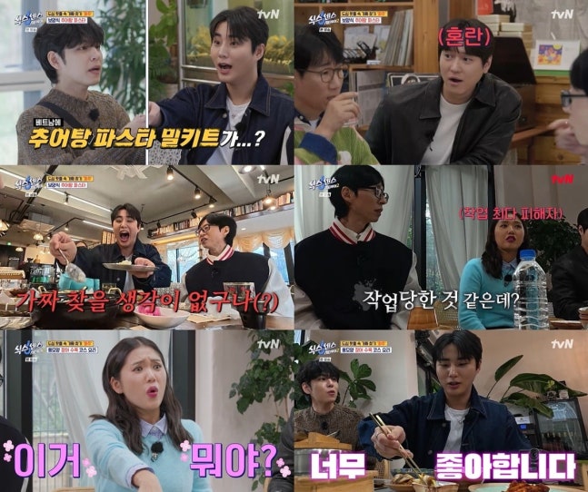 사진=tvN식센이들은 '드라마시티 in 파주'를 주제로 '응답하라 1988', '육룡이 나르샤', '시크릿 가든'까지 드라마 제목으로 표현된 세 곳의 핫플레이스를 방문했다. 먼저 레트로 감성이 충만한 '응답하라 1988' 가게는 추어탕 파스타라는 독특한 메뉴를 판매했다. 무엇보다 원필이 베트남 공연 케이터링에 추어탕 파스타 밀키트가 있었다고 해 제작진의 사전 작업을 의심케 했다.