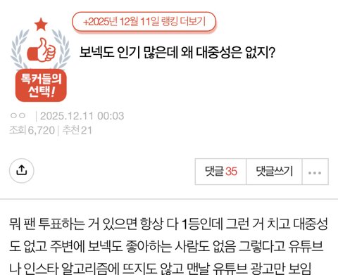 최근들어 갑자기 대중성 없단글 많이 올라오네