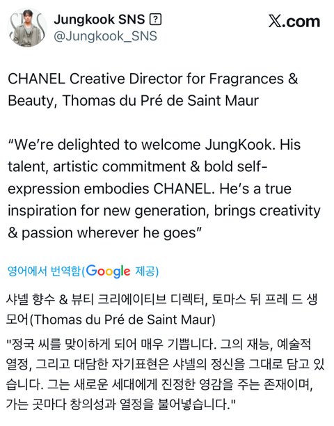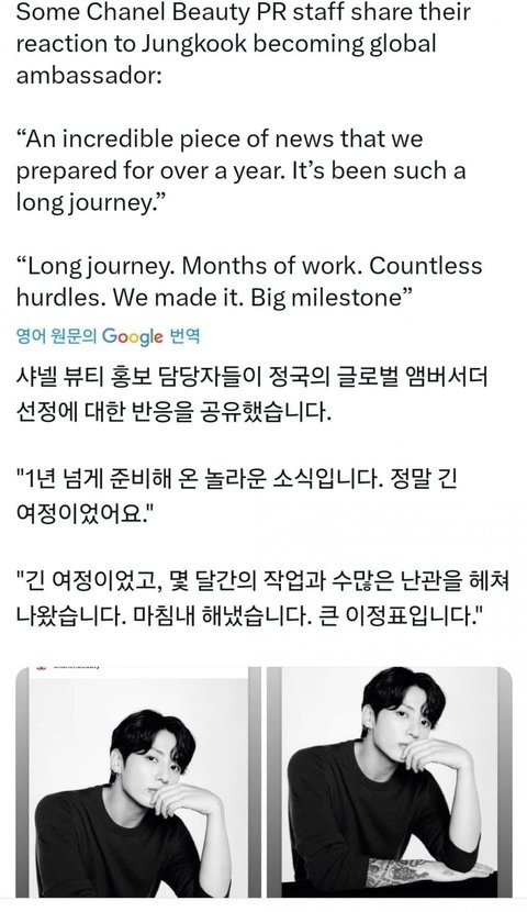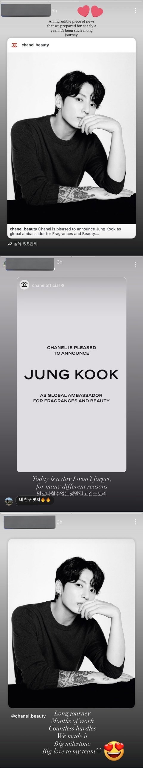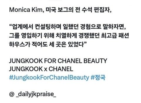 이건 샤넬에서 뷰티•향수가 어떤 의미를 가지는지 잘 알려주는거ㅇㅇ 샤넬에서 뷰티•향수 전체를 대표하는 글로벌 앰버서더를 공식 발표한건 정국이 최초이자 유일하다고 함