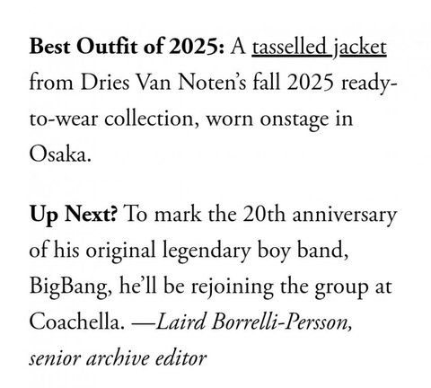 美 VOGUE 2025베스트드레서 지디 뽑힘